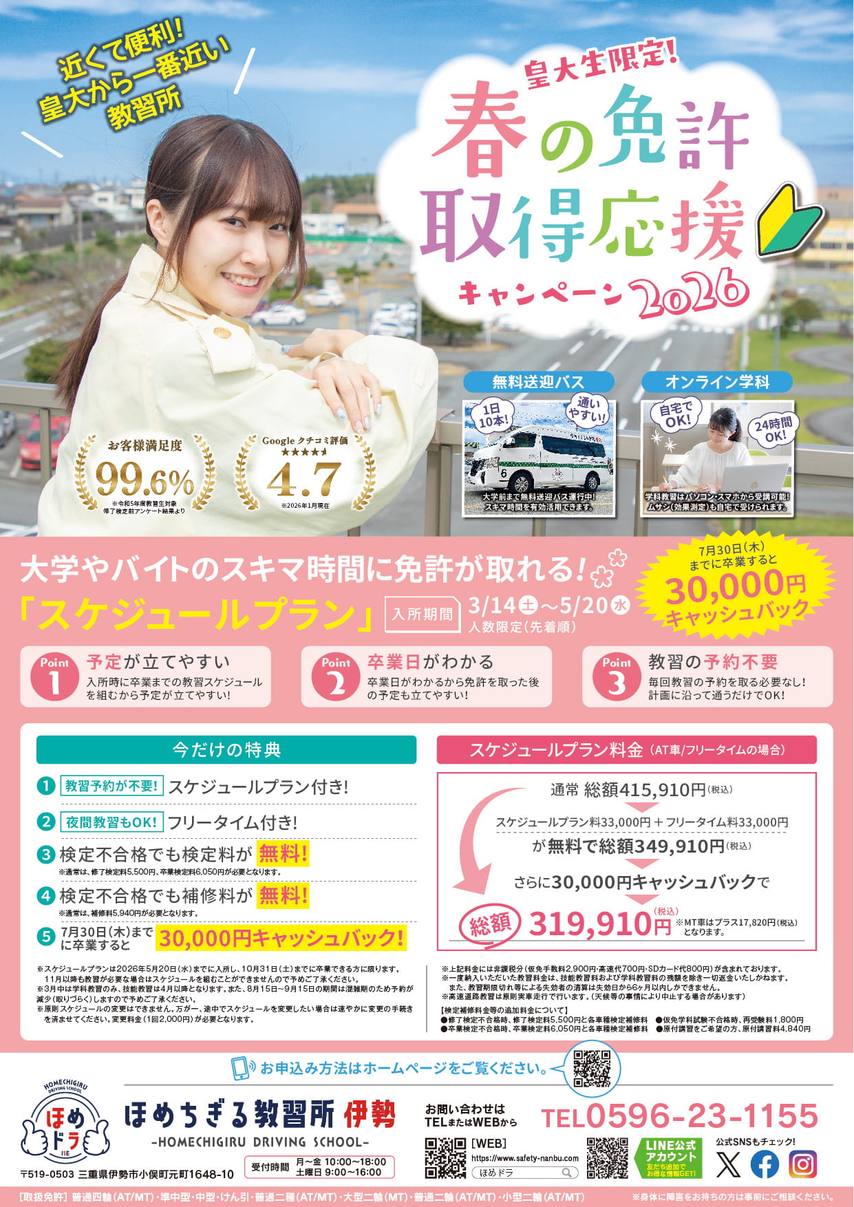 【皇大生限定】春の免許取得応援キャンペーン2026のご案内(5/20まで)